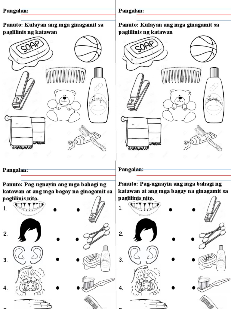 Some of the worksheets for this concept are Filipino baitang 2 ikalawang markahan Filipino baitang 3 ikatlong markahan Edukasyon sa pagpapakatao. 05032014 The last page is a worksheet that asks the child to color the things that are used to keeping the body clean. 1pagliligo araw araw 2pgsisipilyo tatlong beses s isng araw.